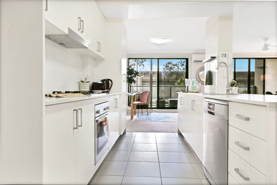 A palatial open plan light filled lounge and dinning area that overlooks the full length wrap around balcony with suburban views. Showcasing a gorgeous gourmet kitchen with gas cooking, quality stainless steel appliances, contempo splash back tiles.