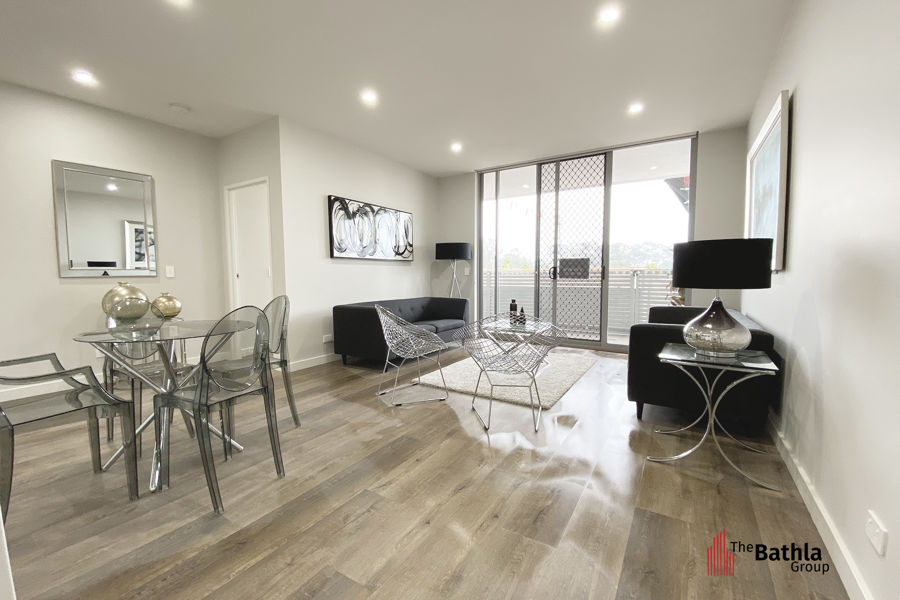 -Apartments enjoy vistas of large private parklands, containing a reflection pond, BBQ area, -promenades and playgrounds