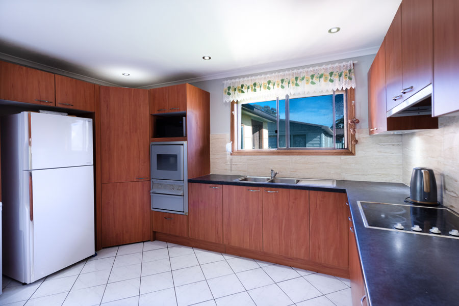 - Grand size kitchen with plenty of cabinetry storage, bench space and electric cooking