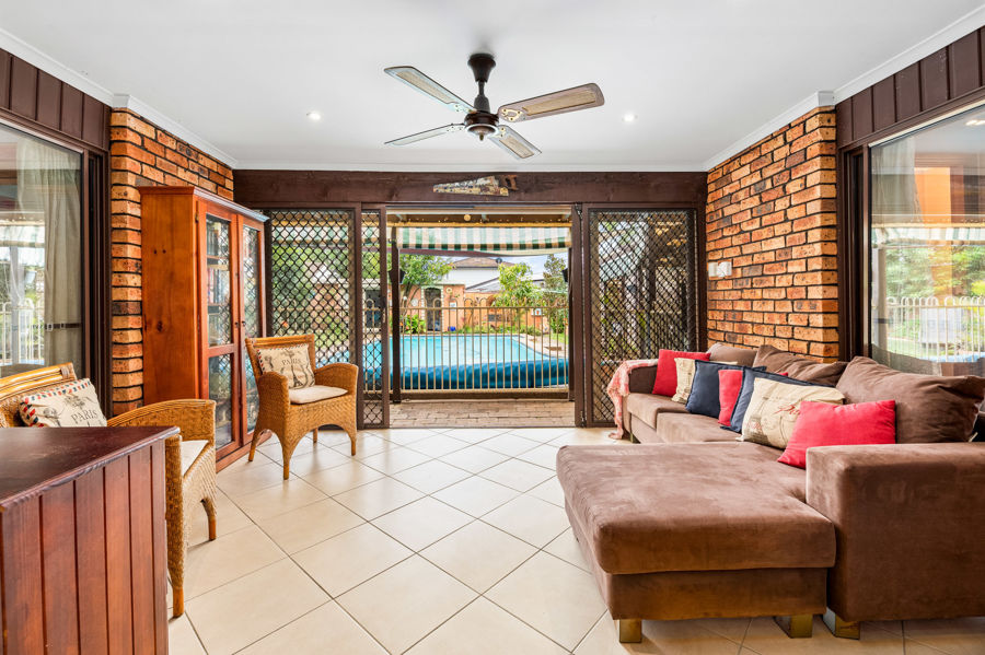 Following into the massive main living area a formal dinning area that flows to the living area that opens up to the large size sunroom with scenic views of the outdoor patio and undercover entertainment area overseeing the large in ground swimming pool. This family home is perfect for hosting family gatherings, and having summer BBQ's.