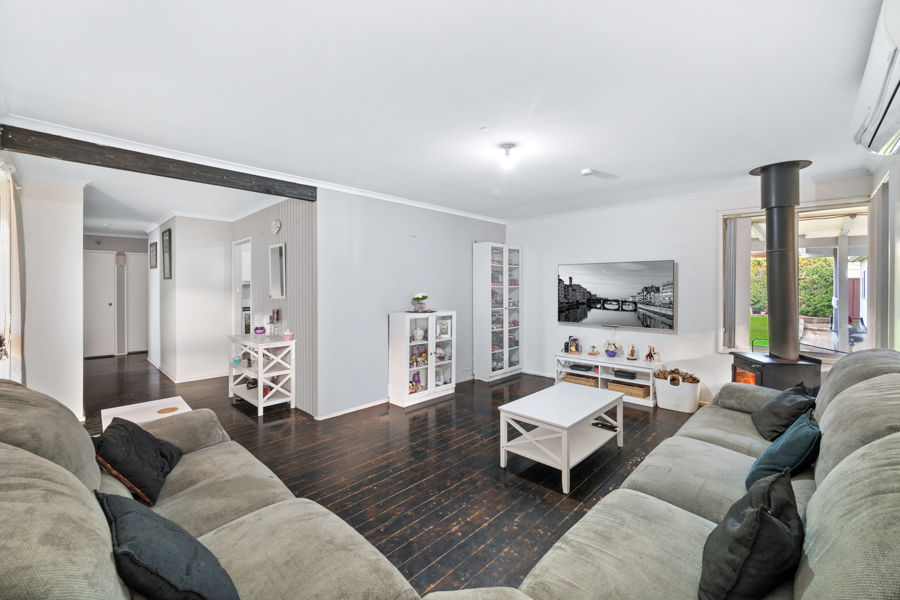 Featuring a generous size open plan living area, stay comfortably warm with the fireplace. The modern kitchen has a separate dining area and breakfast bar for the family. Not to mention three generous sized bedrooms all with built ins.