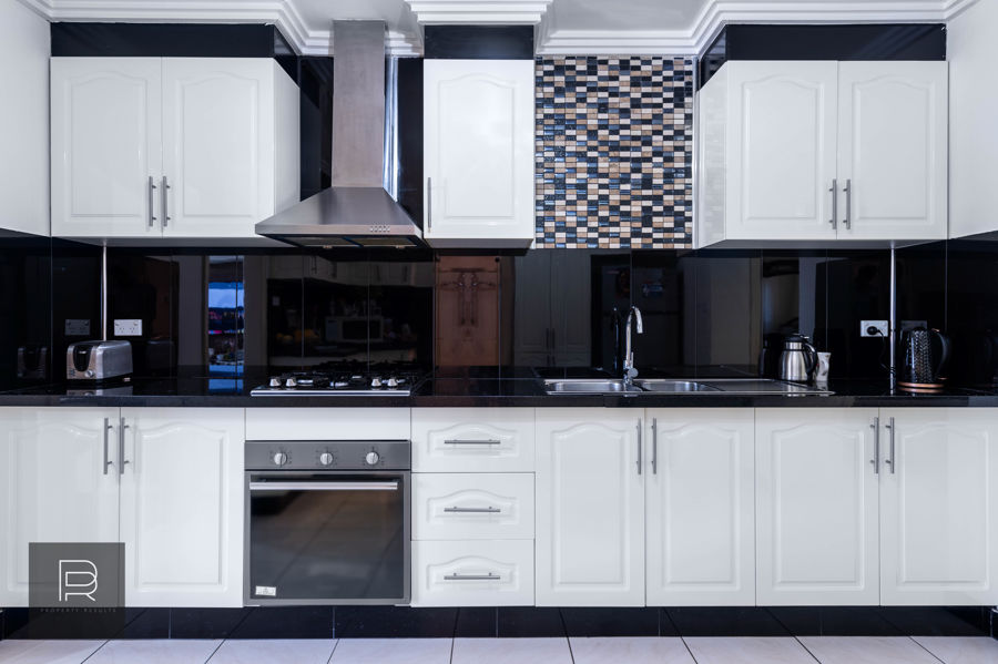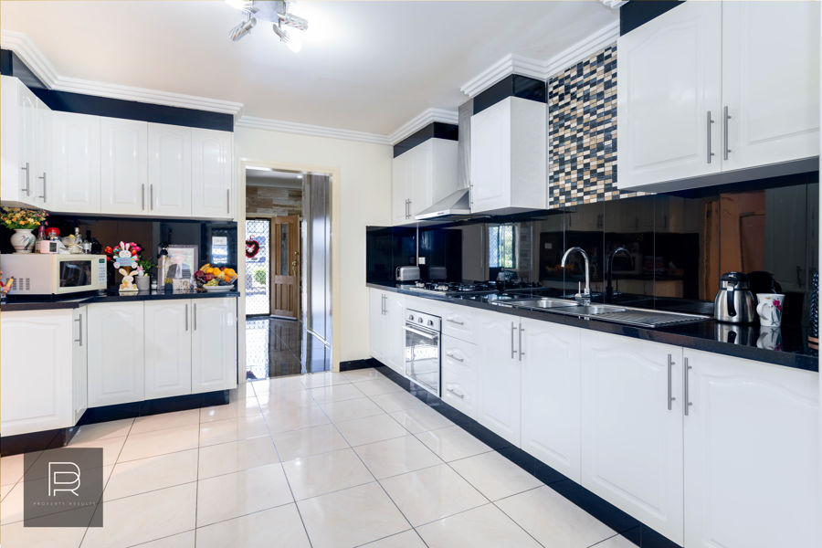 - Contemporary kitchen with stone benches and gas fittings