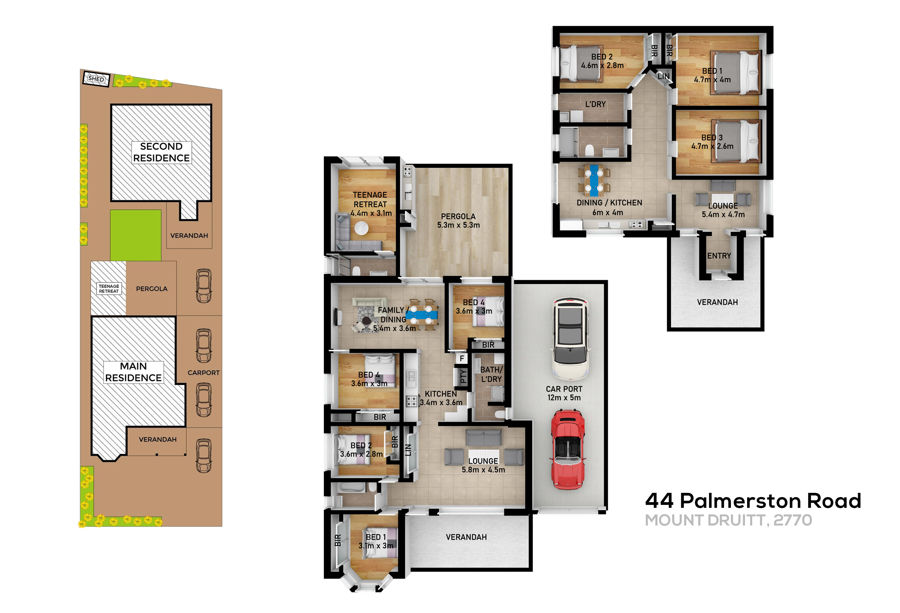 Everything that's needed for flexible family living is delivered in a great lifestyle package in this fantastic real estate offering. This single-level four-bedroom home has been smartly designed and upgraded to provide easy living, and comes complete with a separate three-bedroom residence and extra guest retreat. It offers many layout options suitable for extended families, investors or those seeking a home plus income, and is well-located in a sought-after Mount Druitt street that's close to all schools, parklands, the train station and Westfield Mount Druitt.