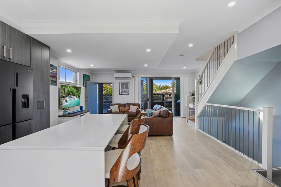 The second level showcases 3 full sized bedrooms all equipped with split air-conditioning with oversized Eastern facing window in bedroom drinking in natural sunlight. A full-sized deluxe bathroom and a Spacious Easterly facing master bedroom with balcony views, walk in wardrobe and Contempo ensuite.